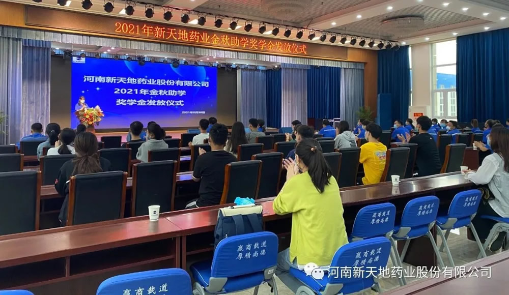 公司秉承“赢商载道,厚积尚德”价值观,履行企业的社会责任,践行尊师重教理念,坚信“知识改变命运”助学回报乡梓,开展金秋助学等多种活动支持关注员工子女成长发展,从有记录可查的2012年至今已累计捐助近30万元,近百名员工子女受到资助,很多新天地药业子弟带着新天地人的殷殷期望,迈入社会成长为中坚力量在各行各业大展宏图,为理想而拼搏。