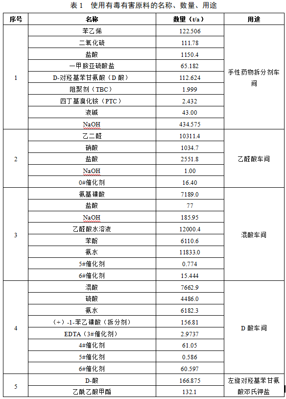 4.2 有毒有害原料使用情况